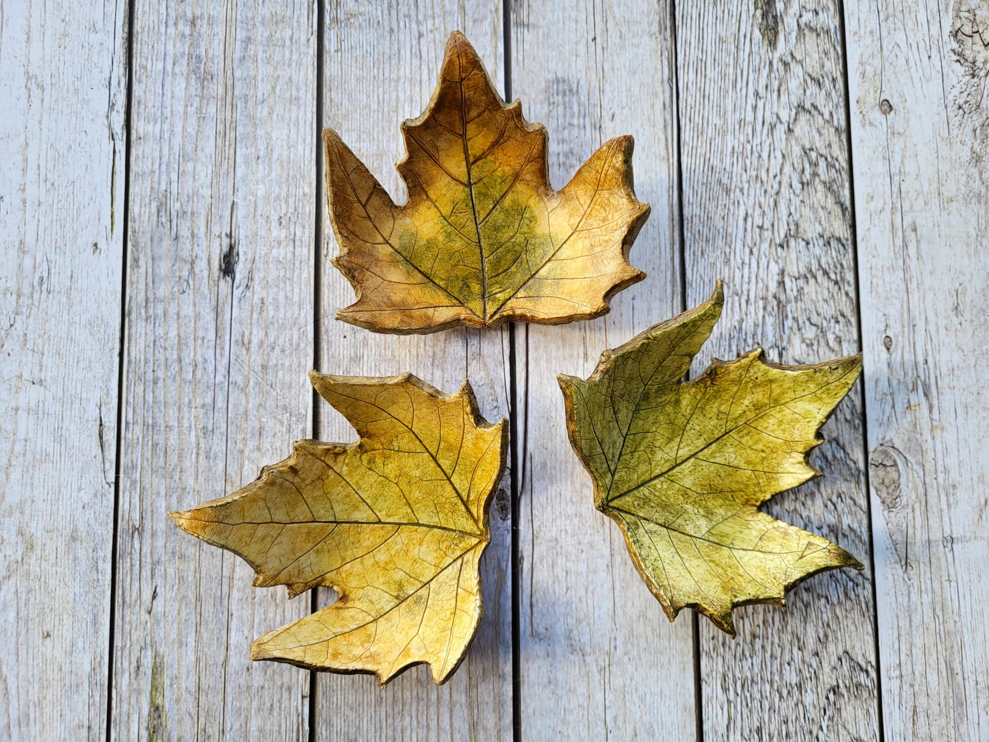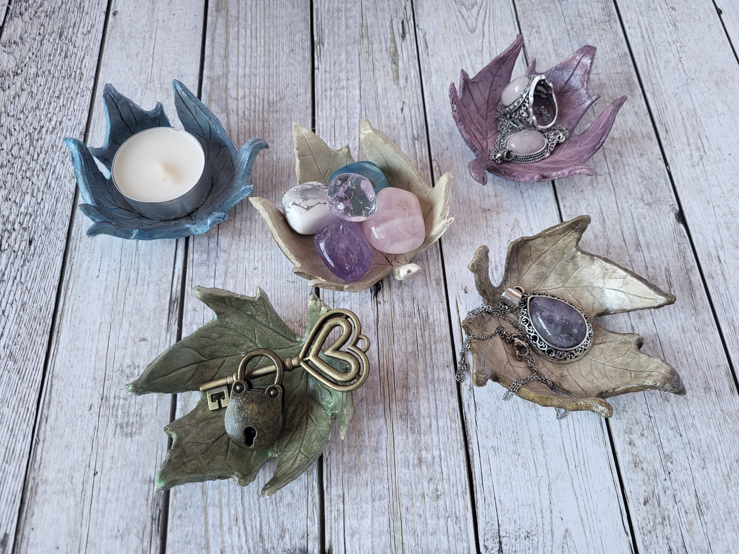 Las hojas caídas de los árboles me sirven de inspiración para realizar estas piezas, cada una distinta y por ello todas especiales.