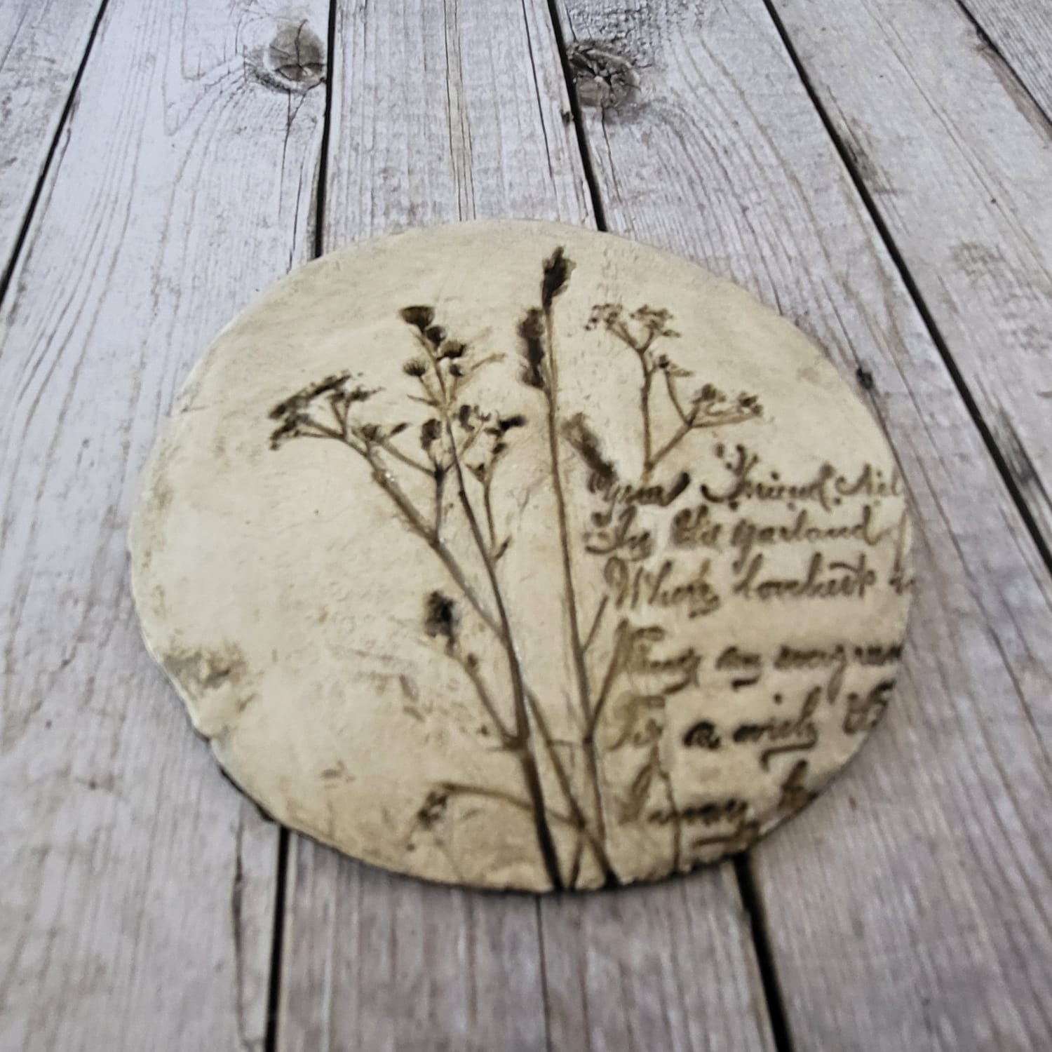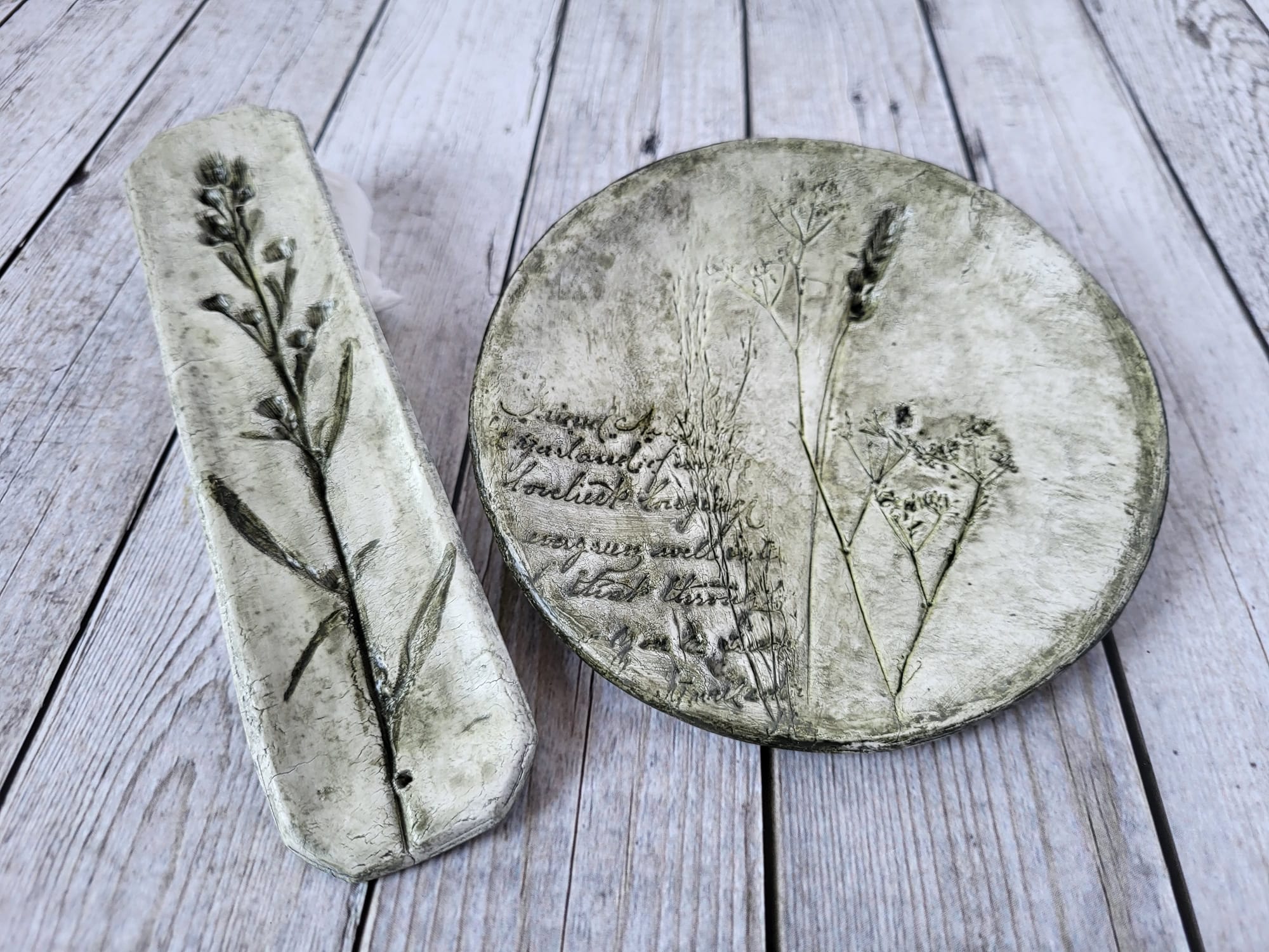 Platos hechos a mano con cerámica y plantas reales prensadas. Decorativos y funcionales al mismo tiempo